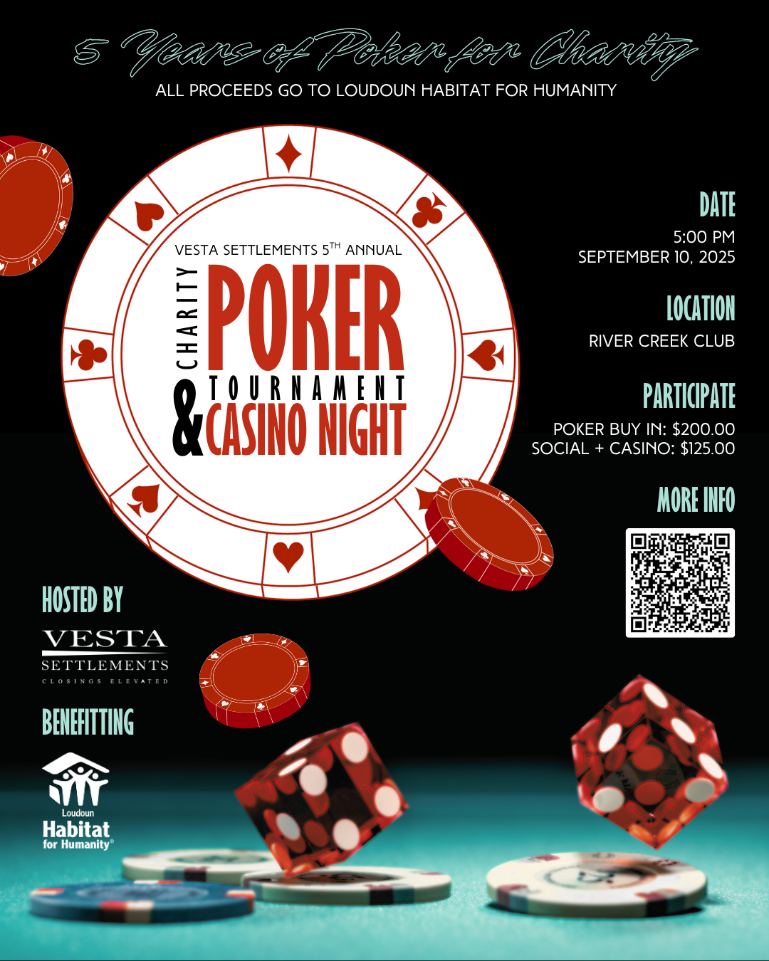 For the past five years, I have led the marketing, creative direction, and execution of Vesta Settlements’ Annual Charity Poker Tournament—an industry networking event and fundraiser supporting Loudoun Habitat for Humanity.